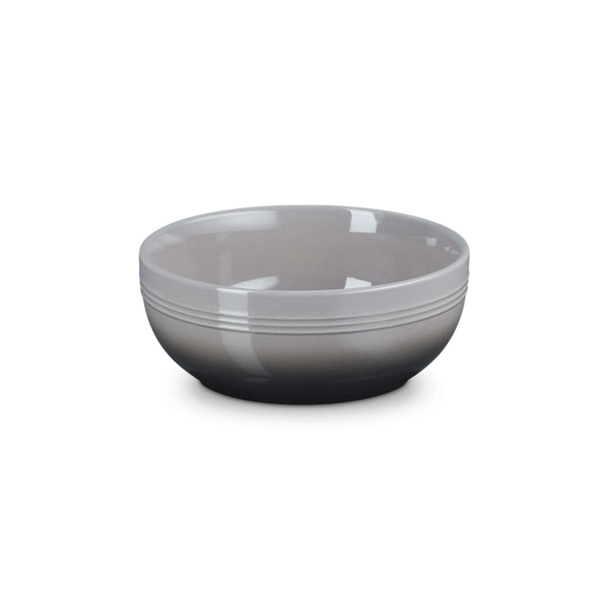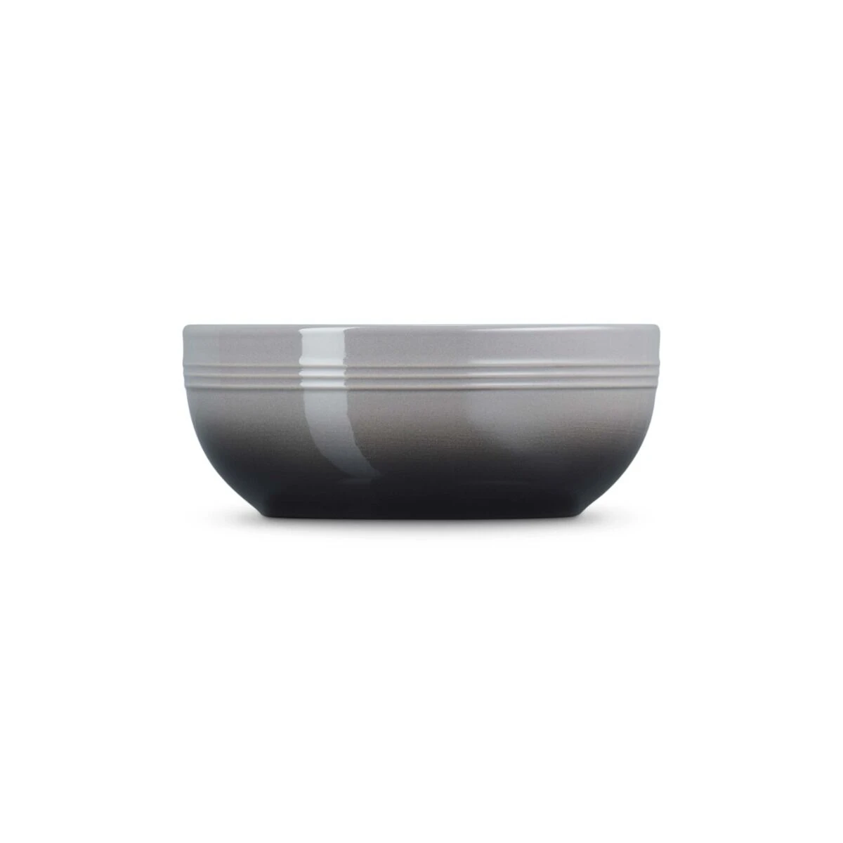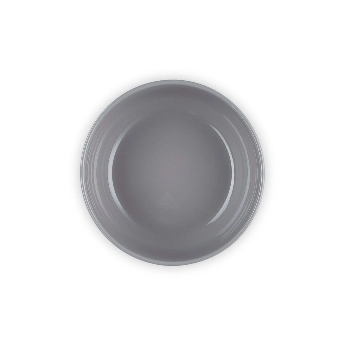 De kom van Le Creuset is gemaakt van geglazuurd aardewerk, uitgevoerd in grijs Flint en heeft een glanzende afwerking. De kom heeft een diameter van 16 cm.
