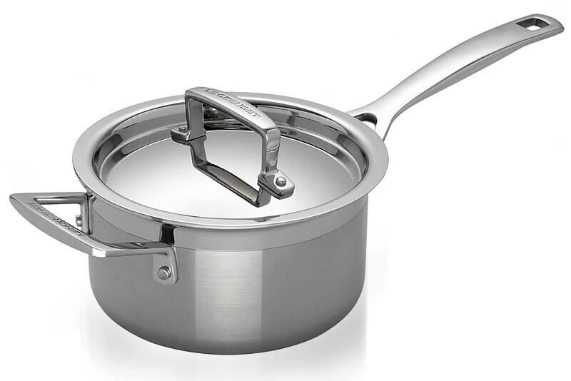 De inductiegeschikte Le Creuset Magnetik steelpan met deksel is van roestvrij staal, heeft een inhoud van 3,8 liter en een diameter van 20 cm. De pan heeft een aluminium tussenlaag, ingekapseld in roestvrij staal, die de warmte gelijkmatig geleidt van de bodem tot aan de rand. Tegenover de steel zit een greep om de pan gemakkelijk te kunnen verplaatsen.