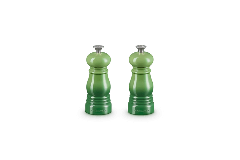 De peper- en zoutmolenset bamboo van Le Creuset is gemaakt van groen kunststof en heeft een lengte van 11 cm. De molen heeft een klassiek ontwerp en is eenvoudig te vullen. Met het keramische maalmechanisme maalt u zowel grof en fijn. Het maalsysteem is eenvoudig aan te passen naar uw wens, zodat u uw gerechten altijd op de juiste smaak brengt. De sluitdoppen zijn voorzien van een duidelijke markering, waardoor de molens gemakkelijk te onderscheiden zijn.