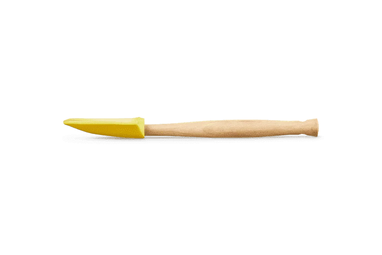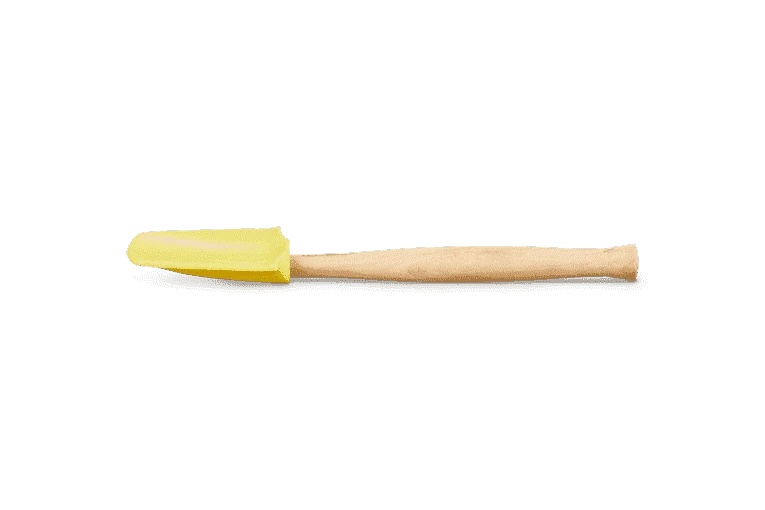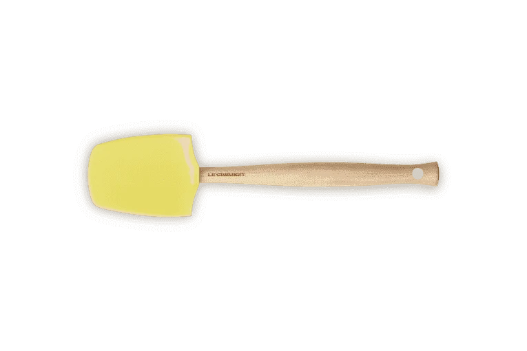 De gele Le Creuset grote spatel is gemaakt van hout en heeft een siliconen blad, waardoor de spatel niet krast. De spatel heeft een platte en bolle zijde en heeft een lengte van 28 cm. De breedte van het blad is 7 cm.